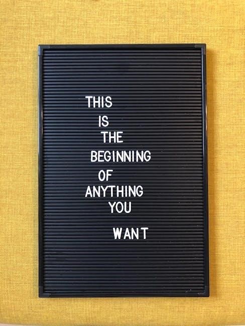 A vision board is a powerful tool to manifest your goals and desires․ Start by gathering materials like cardboard‚ magazines‚ scissors‚ and glue․ Cut out images and words that resonate with your vision and arrange them meaningfully․ Focus on emotions and outcomes rather than specifics․ Display your board prominently to serve as a daily reminder of your aspirations․ This visual representation aligns your subconscious with your goals‚ reinforcing determination and clarity․ Regularly revisiting your vision board helps maintain focus and motivation‚ ensuring consistent progress toward your objectives․